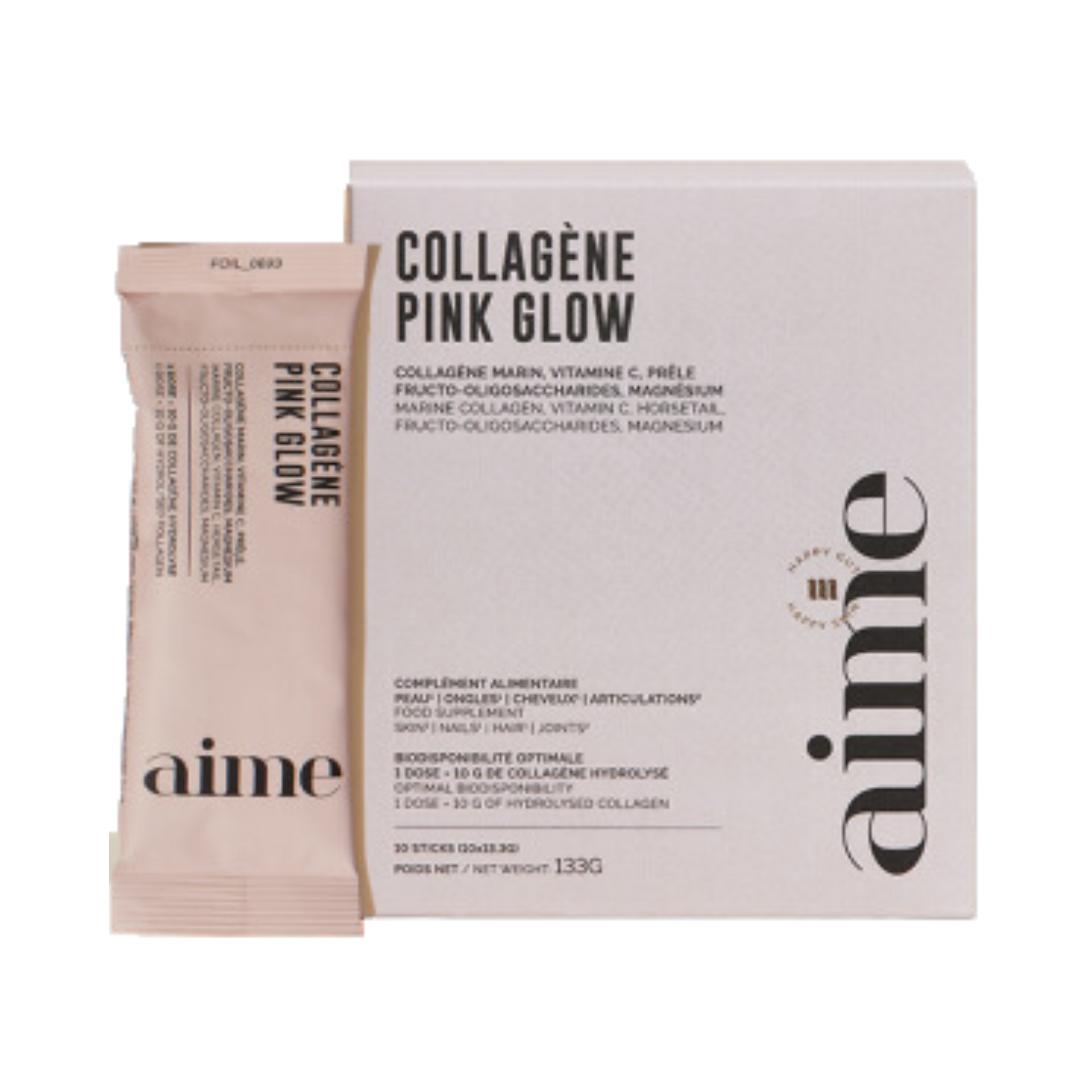 Our hydrolyzed marine collagen (4000 Da - Type 1), combined with vitamin C, horsetail and Montpellier capillary, is a drinkable supplement that boosts the health of skin, hair and nails. Featuring a delicious blueberry flavor, Pink Glow adds a lovely rose hue to beverages like water, lattes and smoothies.