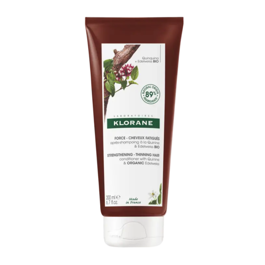 Help strengthen and rejuvenate fragile, thinning hair with the Klorane Quinine & Edelweiss Fortifying Conditioner. Its lightweight, biodegradable formula, made with 90% natural-origin ingredients, combines quinine and caffeine to reinforce weakened follicles, reduce breakage, and improve manageability. Use as a leave-in or rinse-off balm for smoother, fuller-looking hair.