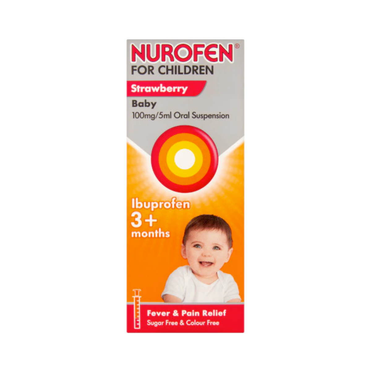 Nurofen for Children Baby Strawberry Oral Suspension 100ml is a liquid ibuprofen suspension that provides pain and fever relief for babies and children. It provides fever relief that lasts for up to 8 hours and is available in both Strawberry and Orange flavours. For over 30 years, Nurofen has helped to provide millions of people with pain relief. We are experienced in children’s fever and pain relief, and we are here to help. Nurofen for Children contains Ibuprofen which has anti-inflammatory properties and provides effective relief from fever and pain. Our great tasting liquid formula does not need to be taken with food or water.