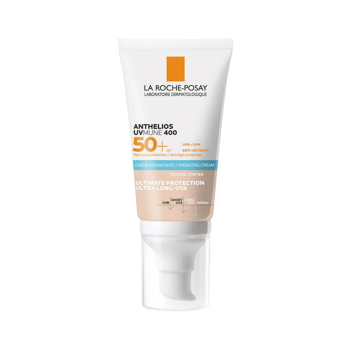 Showcasing new, exclusive Mexoryl 400 (a photostable filter that absorbs ultra-long UV rays and prevents skin ageing), La Roche-Posay Anthelios UVMune 400 Hydrating Suncream Tinted SPF50 protects skin with broad-spectrum SPF50+.