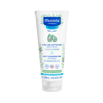 Mustela 2 in 1 Cleansing Gel is specially formulated to treat newborns* skin with care. It is an organic dermatologist tested cleanser, made from avocado. It moisturizes, cleanse and protect baby's skin and hair with care. It can be used daily. Our skin friendly cleanser comes in an eco-friendly recyclable bottle.