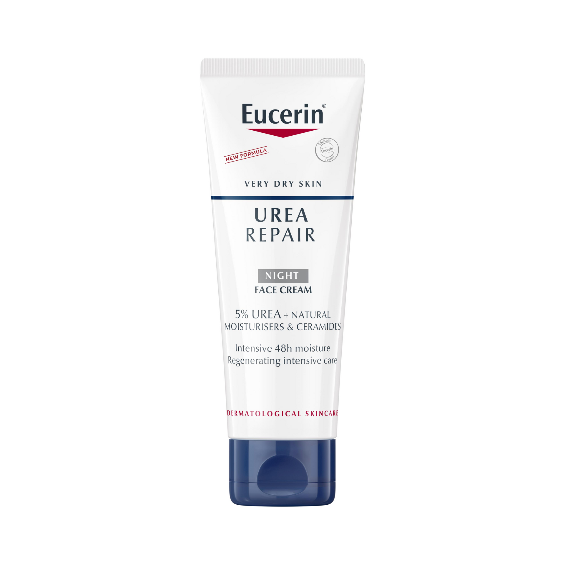 Eucerin Urea Repair Night Face Cream 5% Urea is a moisturizing night cream that provides intensive care for up to 48 hours. The unique formula contains 5% Urea (carbamide) + natural moisturizers and ceramides that improve the skin's ability to bind water, resulting in increased moisture.