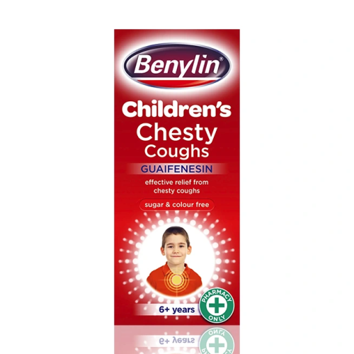 Benylin children's chesty coughs syrup contains the active ingredient guaifenesin.