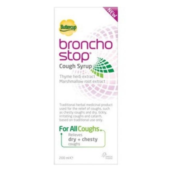 Buttercup Bronchostop Cough Pastilles & Syrup contain thyme herb extract. These are traditional herbal medicinal products for use in the relief of coughs, such as chesty coughs and dry, tickly, irritating coughs and catarrh, exclusively based upon long-standing use as a traditional remedy.