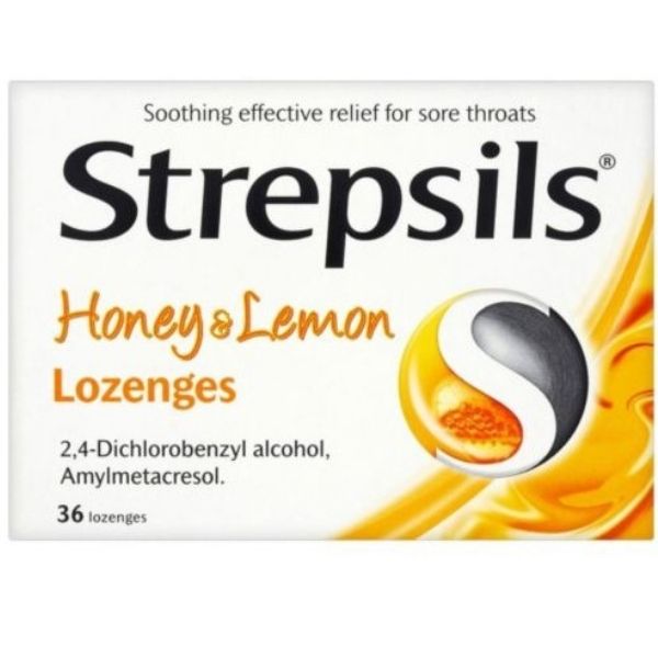 Strepsils Honey and Lemon Lozenges contains two antiseptic ingredients (2,4-Dichlorobenzyl alcohol and Amylmetacresol) for use in throat medications.