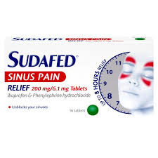 SUDAFED® Sinus Pain Relief Tablets get to work in just 15 minutes and offers up to 8 hours’ relief from painful sinus congestion symptoms. Nothing is stronger for sinus pain in this ingredient combination (phenylephrine/ibuprofen), for easing congestion and reducing inflammation and pain, helping to ease breathing through your nose.