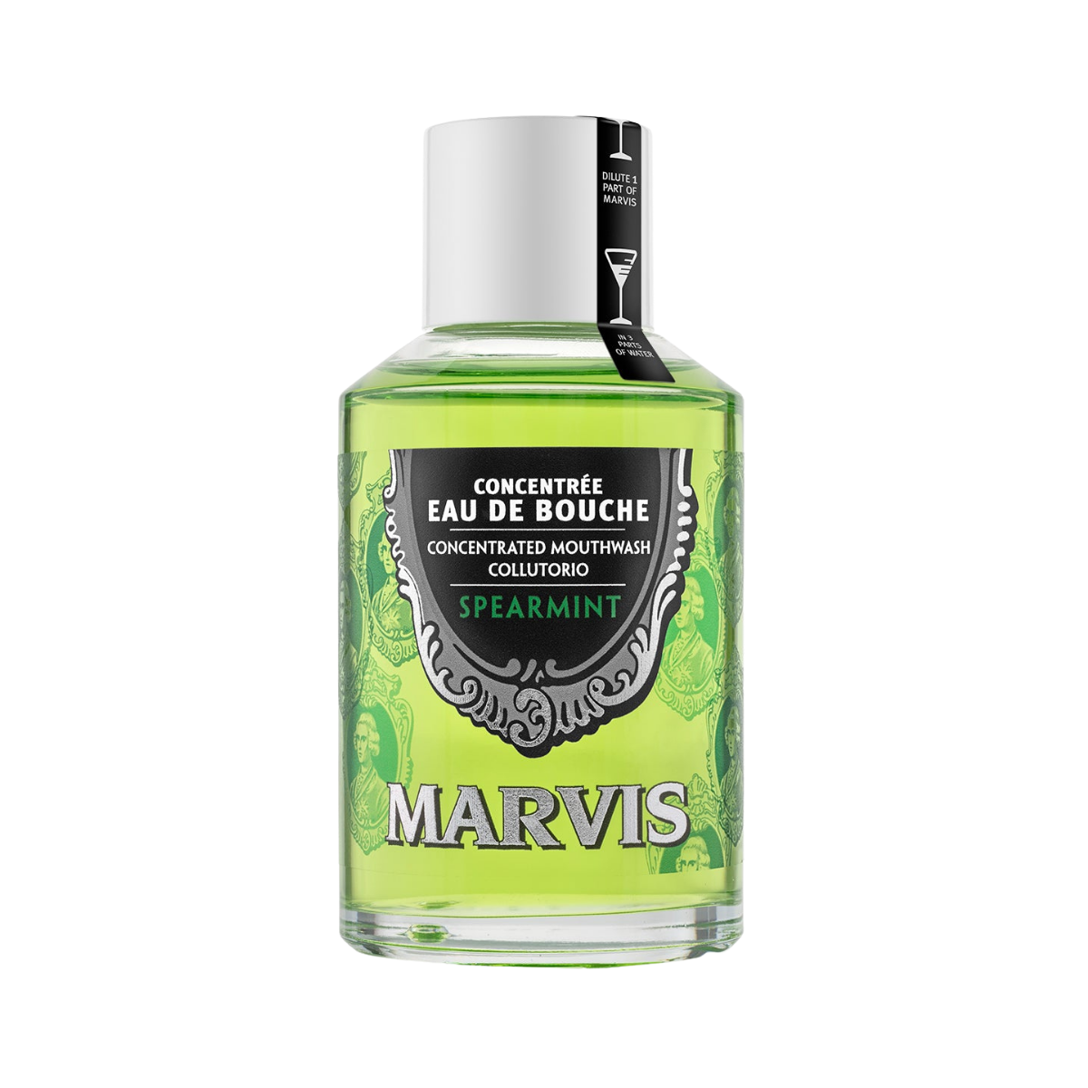 Housed in a vintage-style bottle with a glass-like effect, the Marvis Concentrated Mouthwash Spearmint helps you to care for your smile while looking stylish on the side of your sink. An easy extra step in your brushing routine, the mouthwash is formulated to reduce bacteria, combat tooth decay and minimise the build-up of plaque. Using Propolis to soothe inflammation and Xylitol to balance your pH levels, the mouthwash cares for your teeth and gums to offer additional protection alongside your toothpastes. Finished with a refreshing spearmint flavour, the mouthwash leaves you with a cool, clean feeling.
