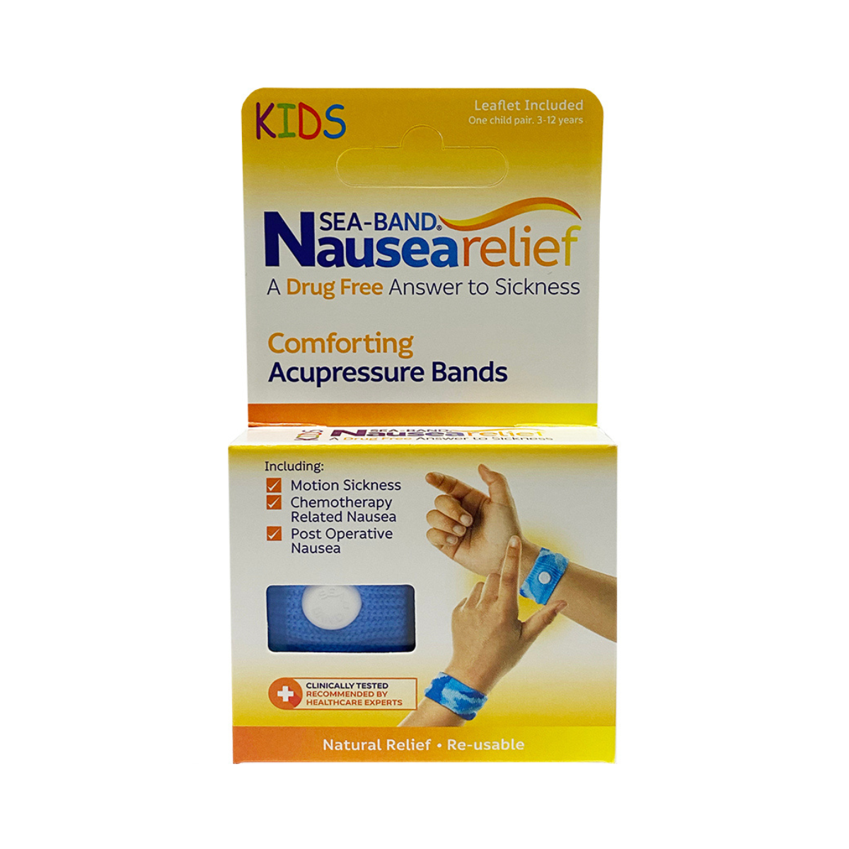 Sea Band Kids Pair Apaisenausées Pair of Acupressure Bracelets - Colour: Blue are acupressure bracelets that soothe and relieve nausea and vomiting associated with motion sickness without medication. They also relieve post-operative and post-chemotherapy nausea and vomiting.