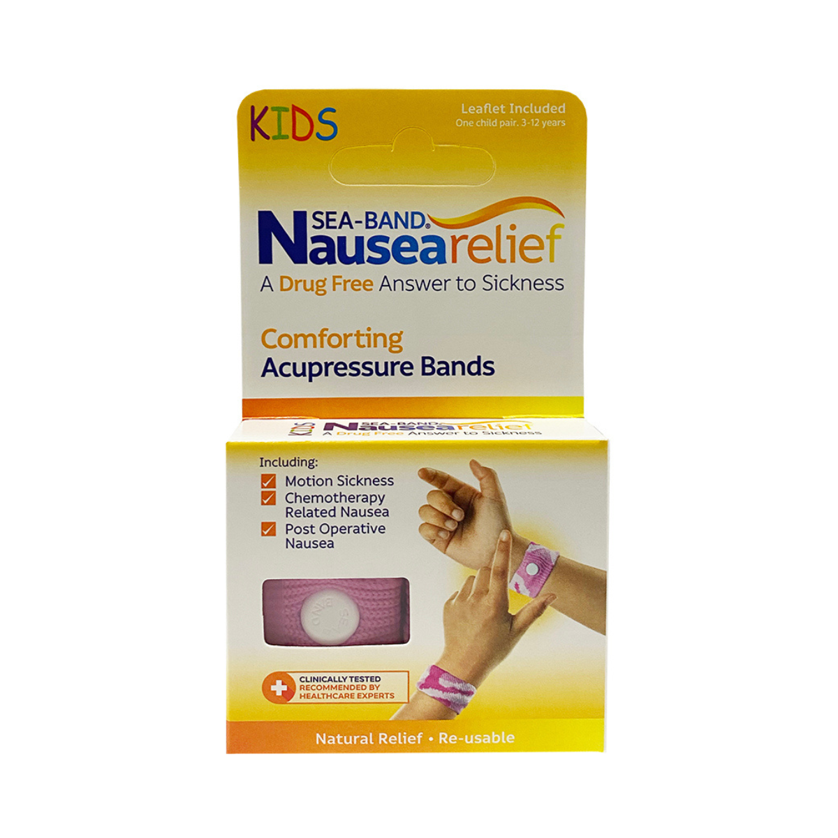 Sea Band Kids Pair Apaisenausées Pair of Acupressure Bracelets - Colour: Pink are acupressure bracelets that soothe and relieve nausea and vomiting associated with motion sickness without medication. They also relieve post-operative and post-chemotherapy nausea and vomiting.