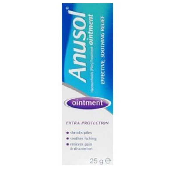 Anusol Ointment relieves internal and external piles, anal itching and fissures (fissures refer to a split or crack in your skin). Apply morning and night, plus after each bowel movement as necessary. Anusol Ointment has a mild oily base which is useful when the skin is sore and dry.