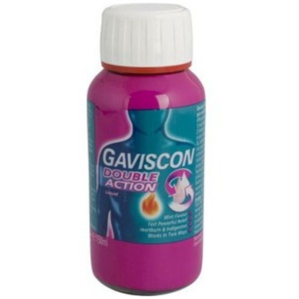 Gaviscon Double Action Liquid brings fast soothing and long lasting relief from the pain and discomfort of heartburn and acid indigestion. It gets to work in two different ways: