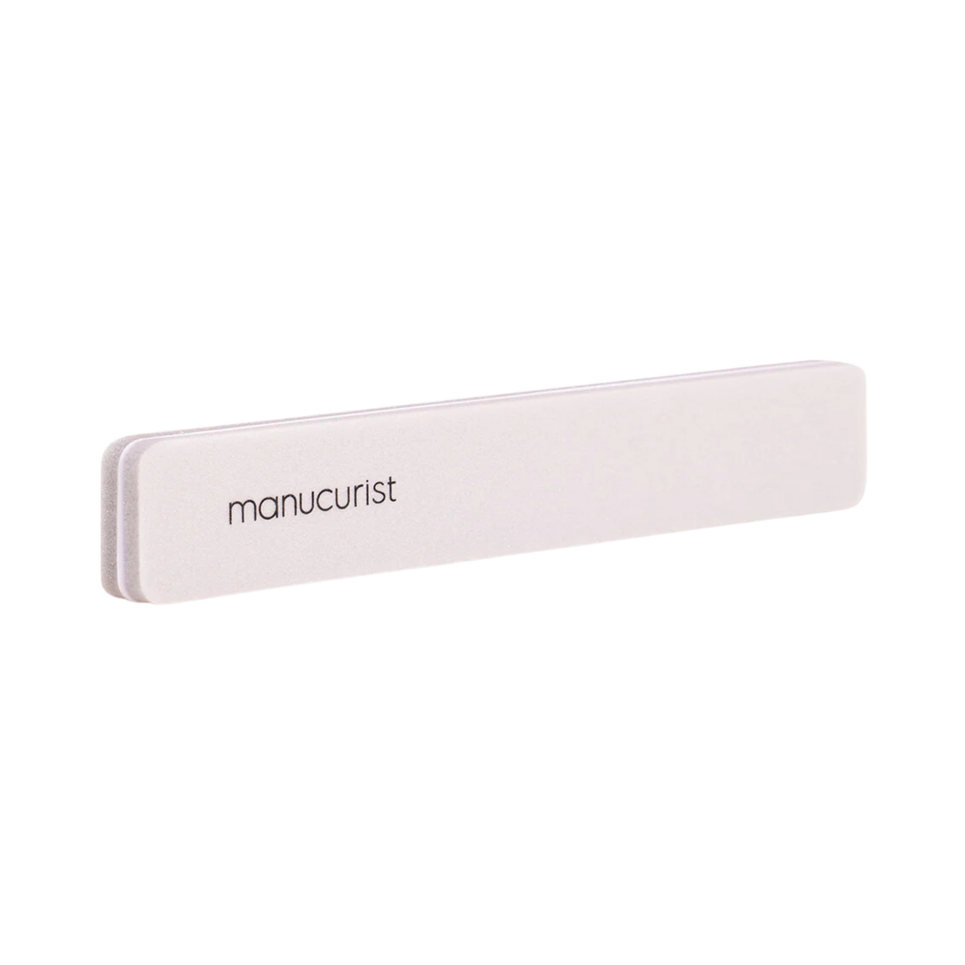 Gently smooth across the surface of the nail without rubbing back and forth. Use the fine grain (Manucurist logo) for your fingernails and the coarser grain for your toenails.