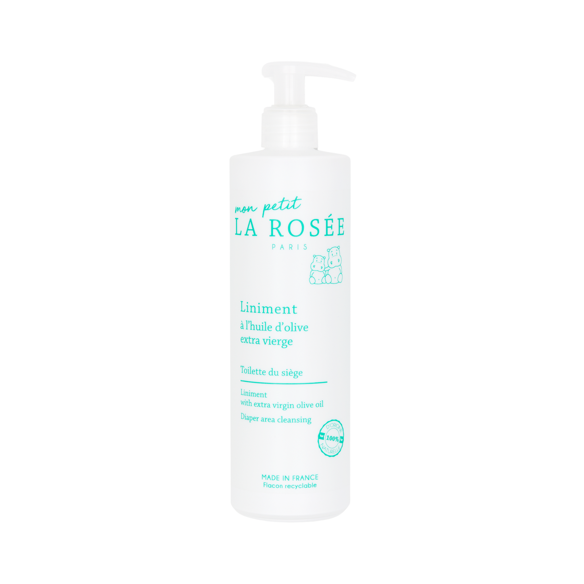La Rosée liniment is 100% natural. It consists of just five ingredients: water, cold-pressed olive oil to cleanse, nourish and protect, a natural emulsifier, limewater to counteract the acidity of urine and stools, beeswax to soften and nourish the skin.
