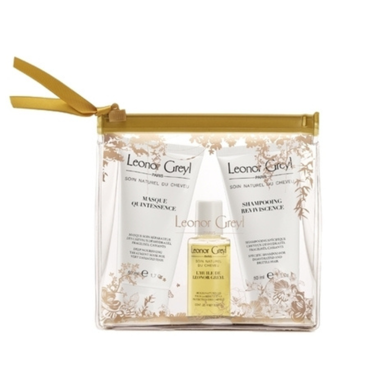 Discover the essentials of Leonor Greyl’s plant-based haircare philosophy in this curated luxury travel kit. Designed to restore hydration, shine and vitality, this elegant set brings together three iconic treatments: the nourishing Huile de Leonor Greyl, the revitalising Shampooing Reviviscence, and the deeply repairing Masque Quintessence. Perfect for weekends away or as an introduction to the brand, this travel-sized trio delivers professional results wherever you go.