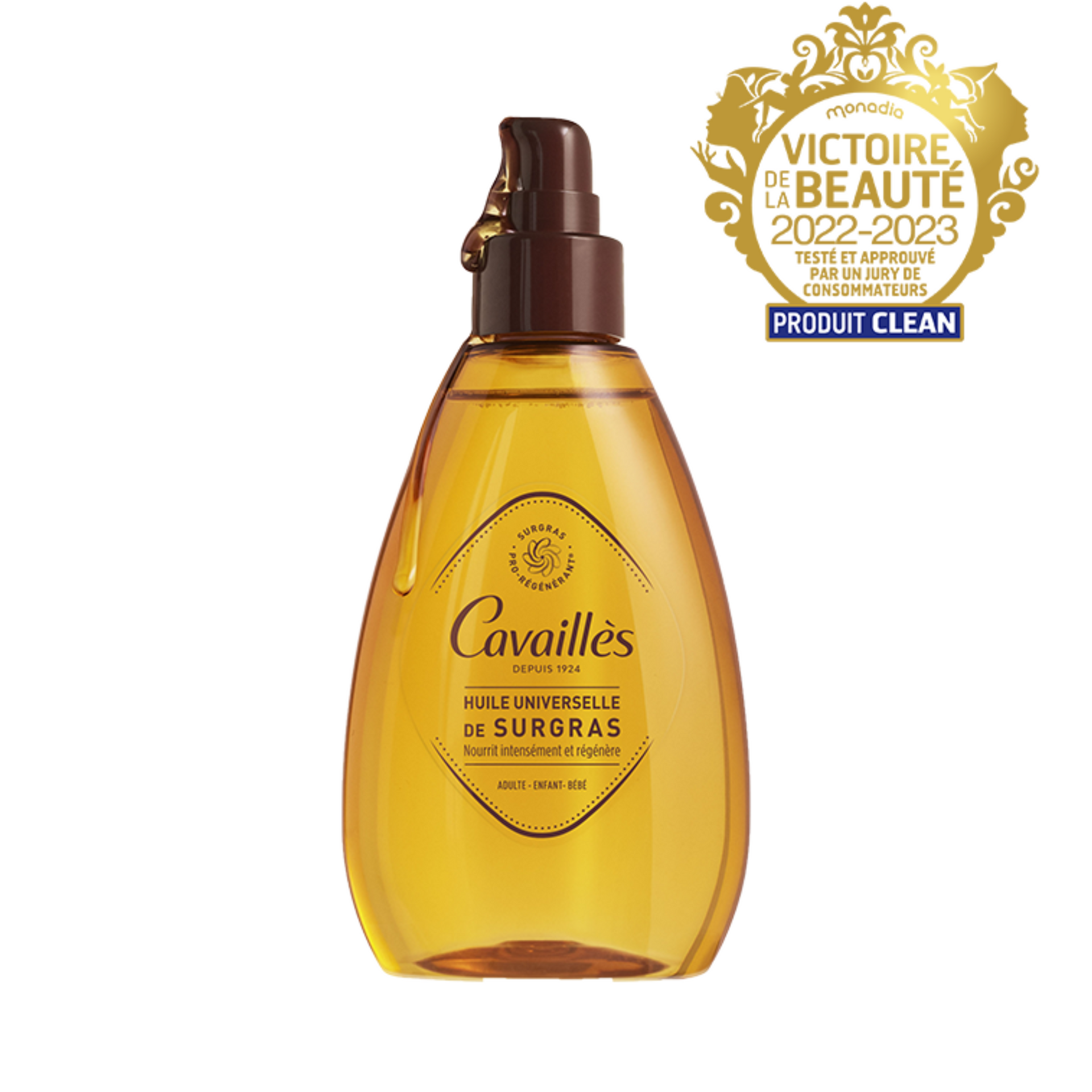 Universal Surgras Oil is the daily care ally. It helps the natural skin regeneration process of the whole family. Its silky texture with a non-greasy finish is formulated with 98% ingredients of natural origin and contains a unique concentrate of superfats: