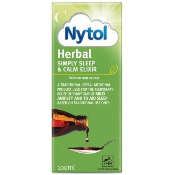 Nytol Herbal Simply Sleep & Calm Elixir is a traditional herbal medicinal product used for the temporary relief of symptoms of mild anxiety and to aid sleep, based on traditional use only.