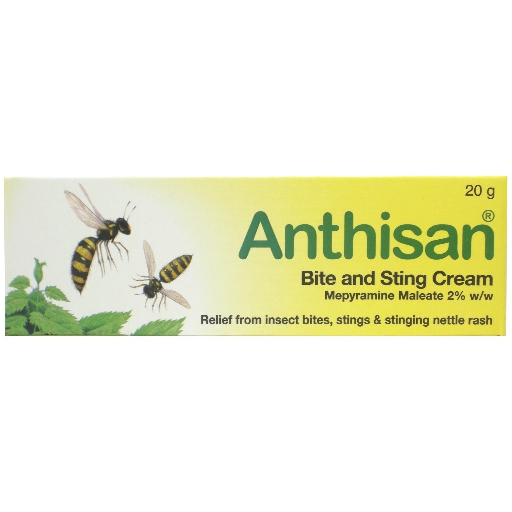 Anthisan Cream For Insect Bites and Stings is a cream that is designed to reduce pain, itching, and inflammation as a result of an insect bite or sting, as well as nettle rash. The active ingredient in the cream is mepyramine maleate, which is an antihistamine. Antihistamines work by blocking the chemical histamine that is produced during an allergic reaction.