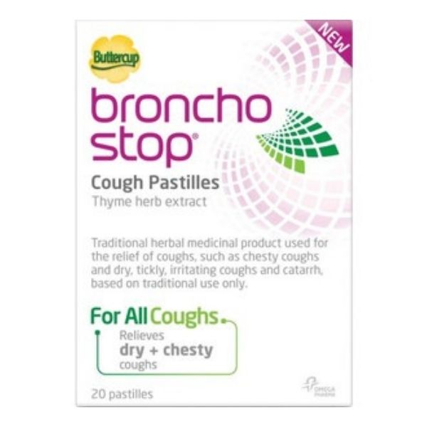 Buttercup Bronchostop Cough Pastilles & Syrup contain thyme herb extract. These are traditional herbal medicinal products for use in the relief of coughs, such as chesty coughs and dry, tickly, irritating coughs and catarrh, exclusively based upon long-standing use as a traditional remedy.