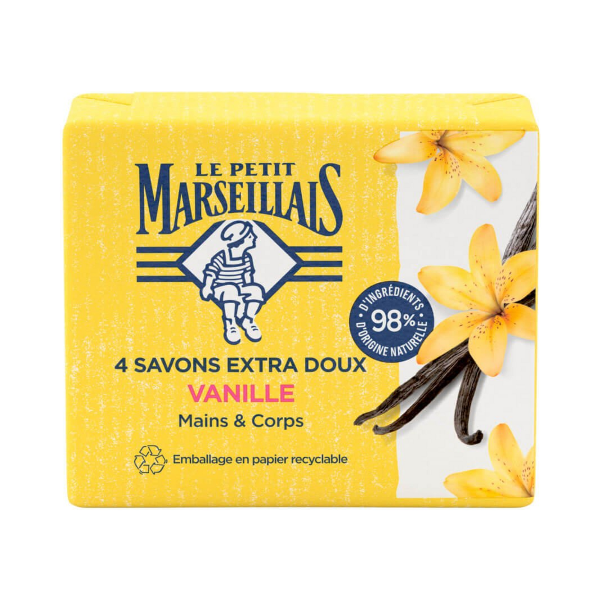 Resulting from the know-how of our master soapmakers, this Extra Gentle Vanilla soap is saponified using vegetable oils. Enriched with glycerin, it chases away bacteria and gently cleanses your skin.