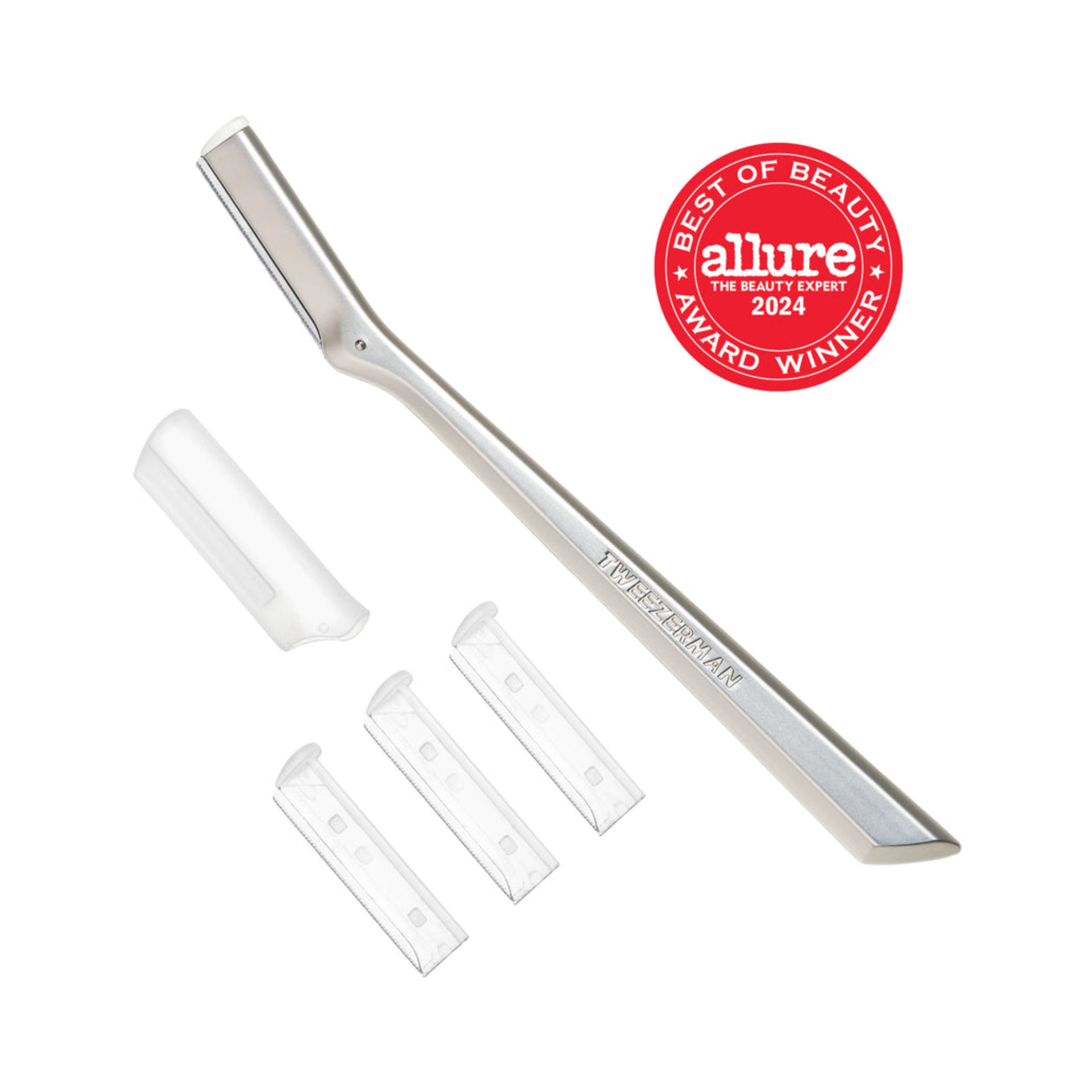 Premium in quality and superior in performance, Tweezerman's facial razor provides easy removal of peach fuzz while gently exfoliating skin. Designed for easy handling and optimal performance for self-care.